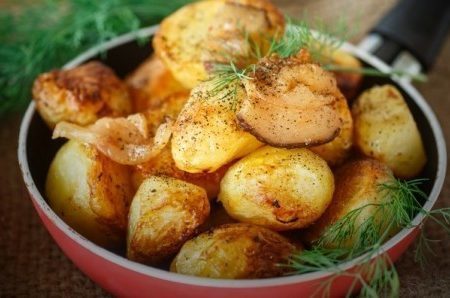 Potatoes baked in the sleeve, soaking the oil ...